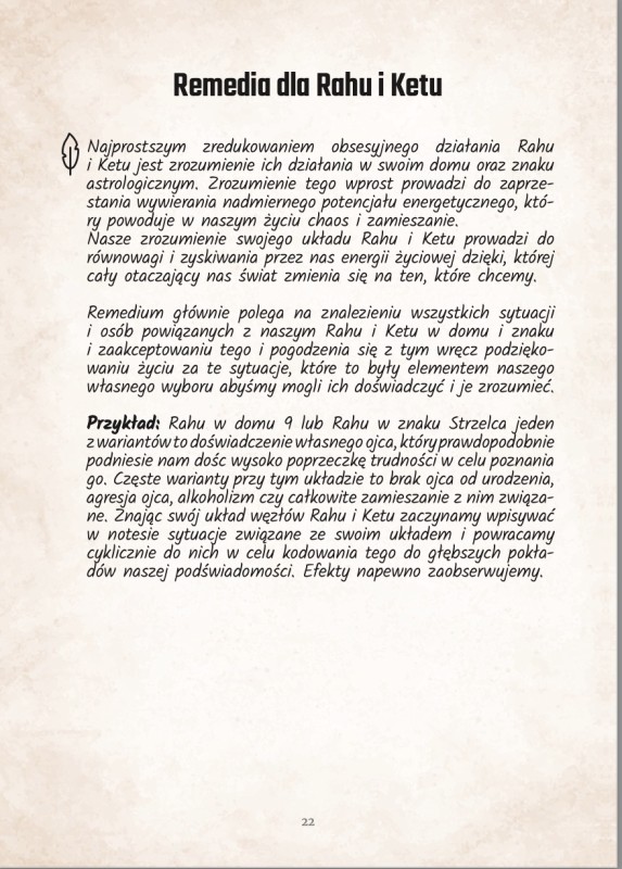 Osobisty notes astrologiczny (Horoskop urodzeniowy) zaprojektowałem z myślą dla osób, które otrzymały swoją osobistą analizę astrologiczną (ale też dla tych ,którzy mają podstawową wiedzę o swoim układzie) i teraz dostają narzędzie aby wdrożyć ta obszerna analizę w życie. Notes służy do zapisania wydarzeń z życia ,które pasują do zasobów duszy człowieka Ketu oraz cele życiowe wybrane do zrealizowania - Rahu. Wieloletnie doświadczenie z hipnozą potwierdzają ,że praca z notesem w sposób bardzo uproszczony zmienia życie człowieka w dość szybkim tempie - statystycznie 1-4 miesięcy już widać duże zmiany w swoim życiu a co najważniejsze sami zaczynamy rozumieć i akceptować wszystko to co nas spotkało dobrego i przykrego -świat zewnętrzny będzie zauważał transformacje człowieka ,że wiedza o swojej mapie życia zaczyna być rozumiana i inni ludzie sami zaczynają nam sprzyjać. Notes pozwala i ogromnie ułatwia zakodować nasz plan duszy do podświadomości co diametralnie zmienia wszystko w nas i w okół nas. Poza zasobami i celami duszy wpisujemy swoje 3 brakujące minerały, opisujemy swoim językiem swoje główne znaki zodiak, księżyc ,ascendent i nakszatry. Znajdziemy również remedia dla nas samych ,które sa podstawą zmiany od nich zaczynamy.Możemy regularnie wracać do swojego notesu i dopisywać wszystko to co tyczy się nas samych jak i zdobyć wiele podstawowych informacji astrologicznych a nie ma lepszej nauki astrologii analizują siebie choć to mylne przekonanie ,że znamy siebie dokładnie to jednak jest naprawdę odwrotnie. Nie zrozumiemy świata i innych ludzi bez dogłębnej analizy samego siebie.